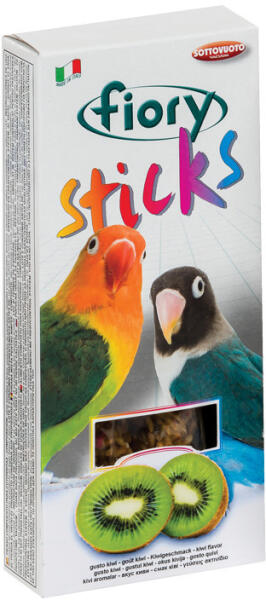 A Fiory Sticks for Parakeets kivi ízű rudak ízletes és tápláló jutalomfalatok hullámos papagájok számára, valódi kivi gyümölccsel. Vitaminokban gazdag, támogatja a csőr egészségét és a madár természetes rágási ösztönét.
