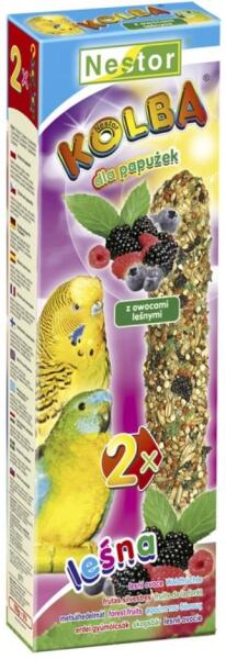 Nestor - Duplarúd hullámos- és törpepapagájoknak erdei gyümölcsökkel 90 g Gabonakeverékkel bevont Nestor eledel pálcika Duplarúd hullámos- és törpepapagájoknak erdei gyümölcsökkel Élmény a magok kicsipegetésében. Tartósítószert természetes összetevőket és vitaminokat nem tartalmaz. Biztonságos kényelmes akasztóval és farudacskával van ellátva. A Nestor rúd EGÉSZSÉGES mert mindig frissen van csomagolva a műanyag akasztó nem okozhat sérülést a fa rúd segíti a fogak kopását. ERŐT AD mert olyan mint egy éttermi menü az állat azt kapja amire szüksége van. SZÓRAKOZÁS is mert válogathat a kedvenc finomságai között mintha csak a természetben lenne a fapálcával pedig jól elszórakozik.