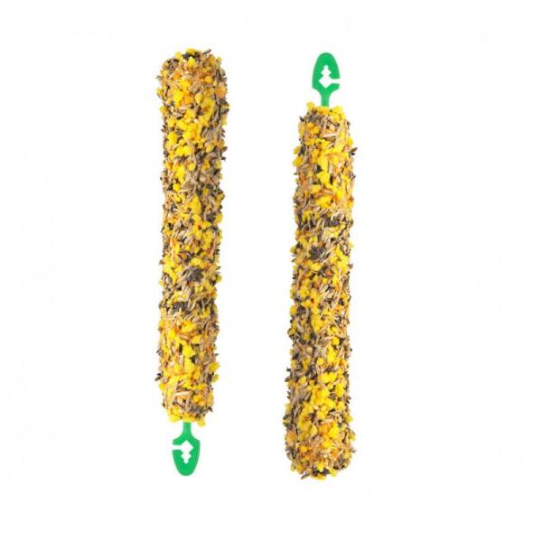 Kiegészítő eledel pálcikák formájában magvakkal trópusi madarak számára.   Összetevők: gabonafélék, magvak (repcemag 7,7 %, fűmag 4 %, vadon élő növények magvai 2 %), szárított tojás 2,4 % Kiszerelés: 2 db (60 g)